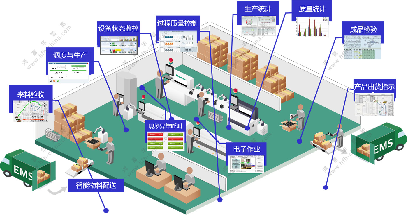 鴻富華自有的MES系統,提供包括生產數據管理、計劃排產管理、生產調度管理、產品追溯、庫存管理、質量管理、設備管理、看板管理、生產過程控制等管理功能,為企業打造一個穩定、可靠、先進、可擴展的智能制造協同管理平臺。